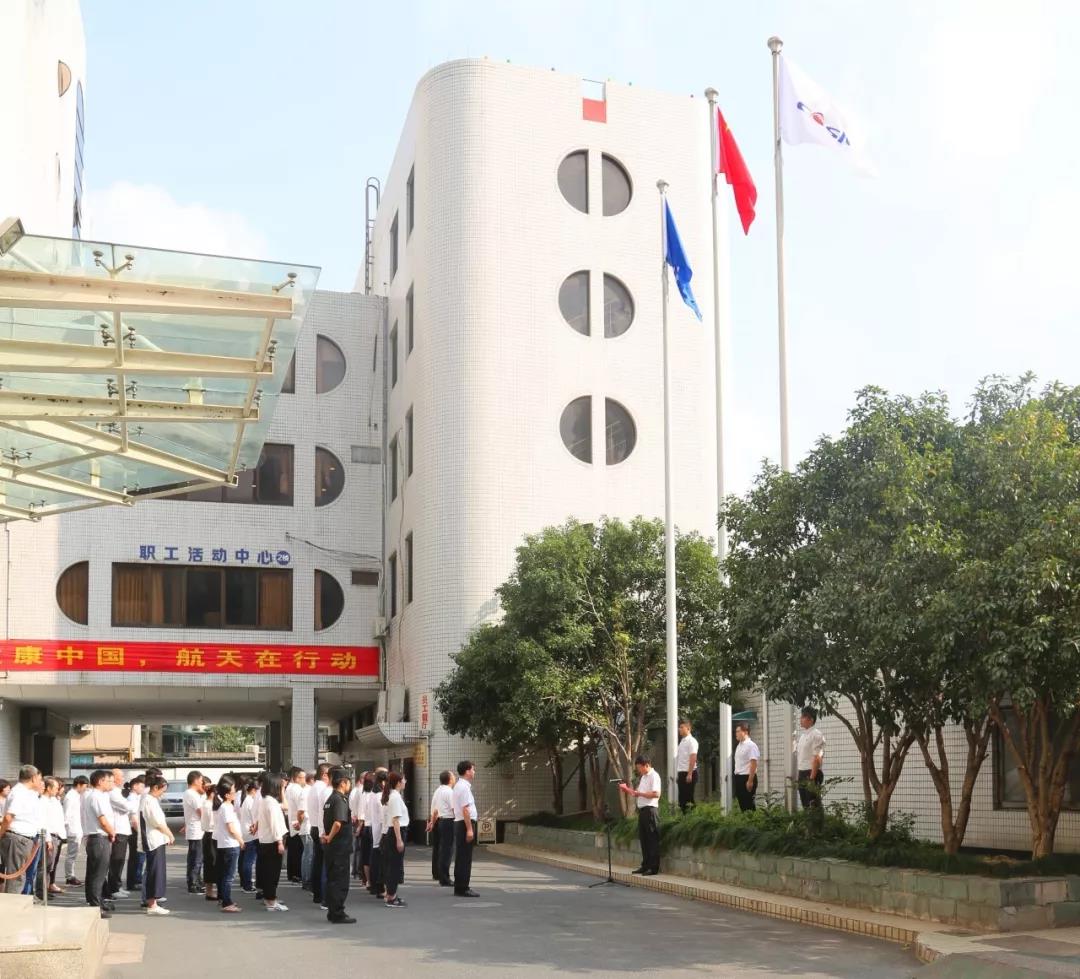 伴隨著雄壯的國歌聲和航天科工之歌,航天通信干部職工莊嚴(yán)肅立,鮮艷的五星紅旗與藍(lán)白航天科工司旗先后徐徐升起,參加升旗儀式的全體干部職工滿懷對祖國的無限熱愛和中國航天事業(yè)的崇高敬意,向國旗和司旗行注目禮。
