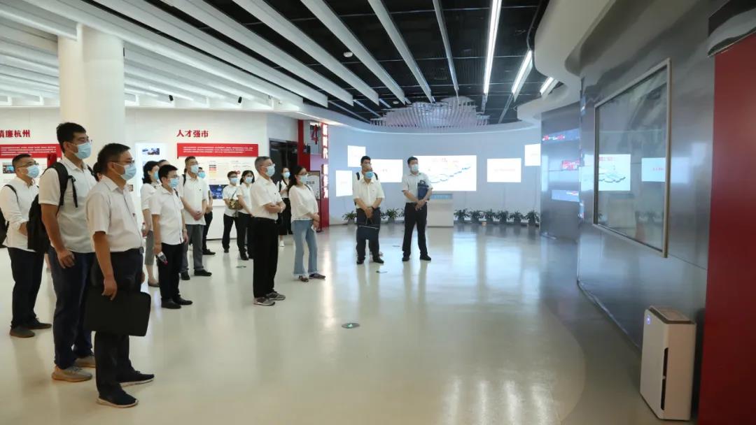 隨后,航天通信一行來(lái)到了黨建宣傳展示廳。通過(guò)觀(guān)摩展示墻的圖片、影像等信息回顧了習(xí)近平總書(shū)記對(duì)杭州的深情囑托和殷切期望,學(xué)習(xí)了解了杭州在新時(shí)代新思想指引下的新實(shí)踐、新作為、新風(fēng)采、新成就,駐足聆聽(tīng)了陳立群、孔勝東、吳菊萍等感人故事,一段段優(yōu)秀事跡深深觸動(dòng)了在場(chǎng)黨員。